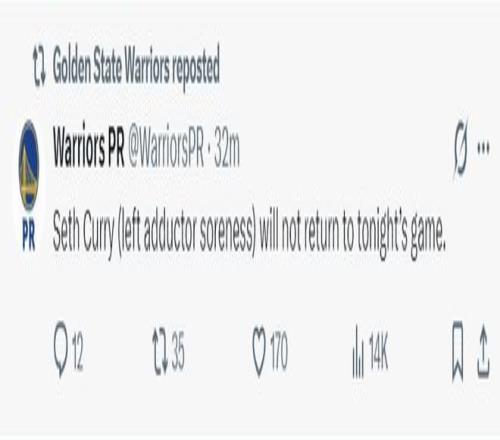 紧接着替补席的赛思库里仅仅出战7分钟就因为左内收肌酸痛退出比赛,本赛季小库里一直都饱受大腿内收肌的困扰,这下不知道又要缺席多久。