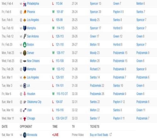 库里自1月31日后就没有出战过,最近的16场比赛勇士输掉其中的11场,加之开拓者击败爵士队,换言之西部第十的开拓者与西部第九的勇士只差0.5个胜场,勇士队掉到西部第十只是时间问题。