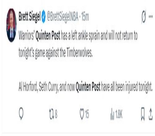 勇士媒体对小库里、霍福德、波斯特一同伤退感到非常的难过。