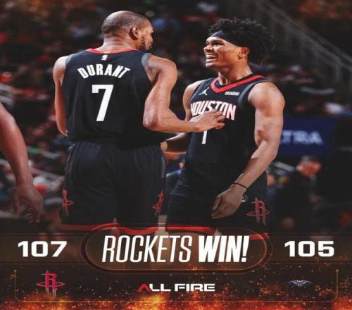 拿下鹈鹕后,火箭41胜25负借交手优势超越湖人(41胜25负)重返西部第3。