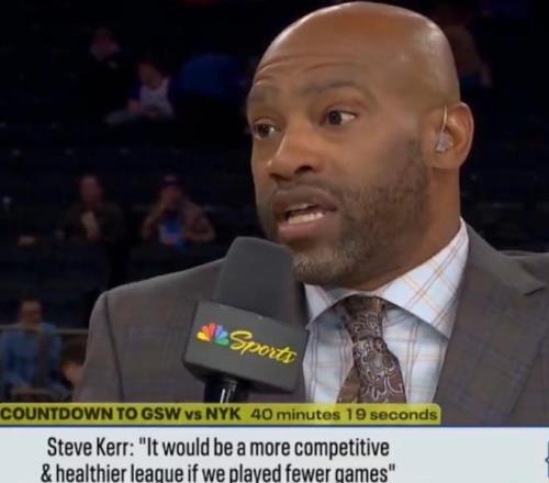 对此,前NBA球员,现NBA解说文斯卡特则表示反对,他说在自己打球的时代,NBA也有缩短赛程的讨论,但传球已经形成,大家都习惯了82场比赛,教练自己也可以调整,比如减少球员出场时间,减少训练时间和场次,不一定就要减少场次。