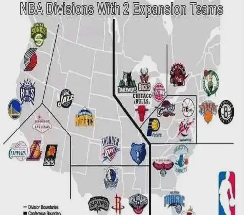 假如真扩军到32队,NBA可能将划成8大赛区,森林狼顺理成章和雄鹿、公牛、活塞同一赛区。