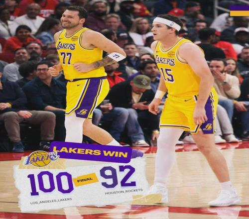 斯玛特和艾顿连得5分,末节最后1分钟,湖人领先到6分。最后43.4秒,艾顿篮下抛投,杀死比赛的一球。艾顿迷失三节,最后时刻支棱起来。暂停回来,火箭失误,詹姆斯快攻暴扣。最终湖人100-92战胜火箭,保住西部第三。