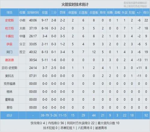 小贾巴里-史密斯22分8板、阿门19分12板5助4失误。杜兰特18分5板2助7失误,下半场5中1仅得2分,出现6次失误。最后看看数据,说说你的心情: