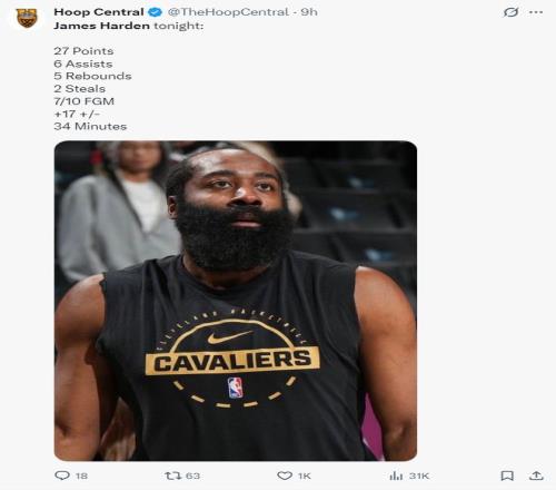 北京时间3月18日,骑士123-116险胜雄鹿。这场比赛虽然雄鹿的核心扬尼斯因伤缺席,但小波特、罗林斯、波蒂斯、吉昂状态出色,雄鹿在一度落后骑士15分的情况下在末节疯狂追分,好在关键时刻哈登的个人进攻帮助骑士涉险过关。