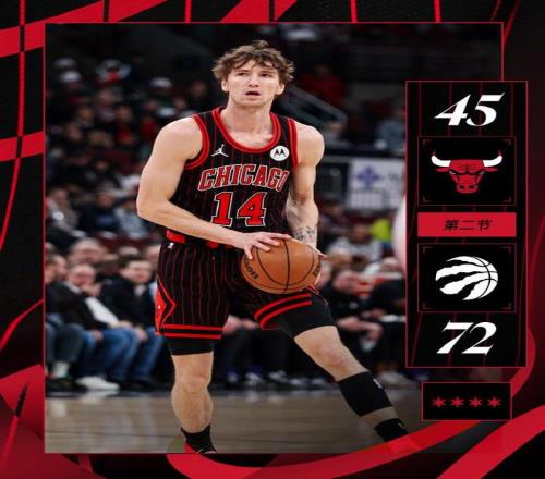 次节比赛,双方进攻火力均有所提升,猛龙更是本场首次单节得分40分,但限制公牛连续两节单节不足30分。猛龙继续团队攻势碾压公牛,猛龙单节40-28净胜12分,上半场结束猛龙扩大72-45领先公牛27分优势。前两节比赛,猛龙三分16中8,巴雷特14分、英格拉姆6中6得到13分、巴恩斯13+7与奎克利10分;公牛三分18中6,全队没有球员得分上双,吉迪10中2仅得到5分1助攻1抢断与布泽利斯9中3得到9分。