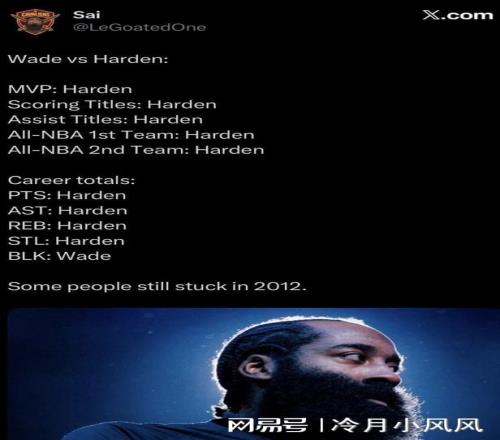 同时,贝弗利还转发了一组双方数据对比,结果显示哈登在Mvp、得分王、助攻王、一阵二阵次数、总得分、总篮板、总助攻、总抢断都比韦德多,韦德仅在总盖帽一项上领先。两人最巅峰的赛季对比情况显示哈登(17-18赛季)在得分、助攻、两分球命中率、三分球命中率、有效命中率、真实命中率、效率值、胜利贡献值、正负值、不可替代值、球队胜场数上全面优于韦德(05-06赛季)。