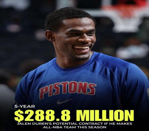 而一旦入选最佳阵容,杜伦可以签下的最大顶薪合同将从5年2.407亿提升到5年2.888亿,差额4810万。