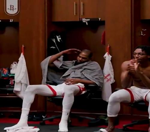 杜兰特被大家狂喷冷水,吓得在更衣室里狂奔不止。