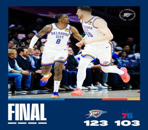 常规赛,雷霆客场123-103战胜76人。