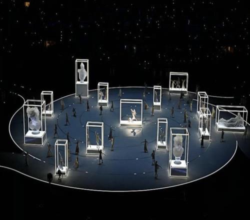 圣西罗球场内部已摇身一变,成为一座活生生的博物馆。俊美的爱神丘比特进入中央展柜,用一个吻唤醒沉睡的爱人普赛克,并与之翩翩起舞。