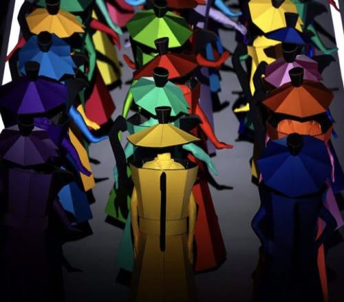 到了现代,我以为冲锋衣要出场了,没想到突然开始搞抽象,一群银色的外星人开始翩翩起舞。