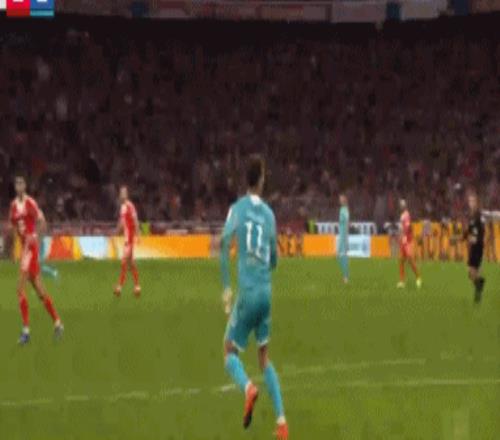 比分领先且多打1人,诺伊尔却出现了不该出现的失误。第35分钟,诺伊尔开球时出现低级失误,阿斯拉尼禁区内断球之后横传,无人盯防的克拉马里奇轻松推射破门。从慢动作来看,诺伊尔处理球过于随意,传球力量不足,结果被阿斯拉尼断球。
