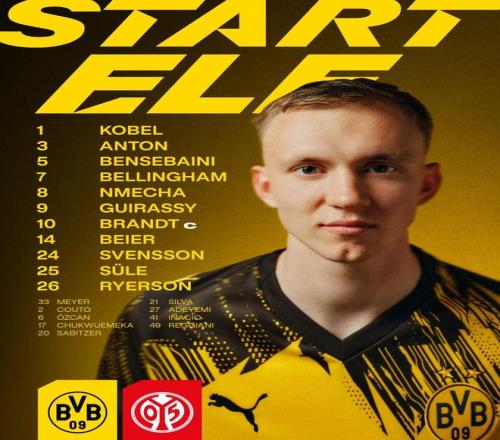多特vs美因茨:吉拉西、布兰特首发,拜尔、恩梅加出战