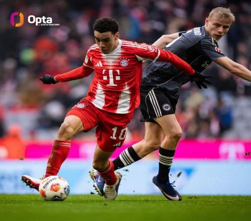 周六结束的一场德甲第23轮比赛,拜仁主场3-2战胜法兰克福,拜仁攻击手穆西亚拉首发登场,迎来个人第100场德甲胜利。