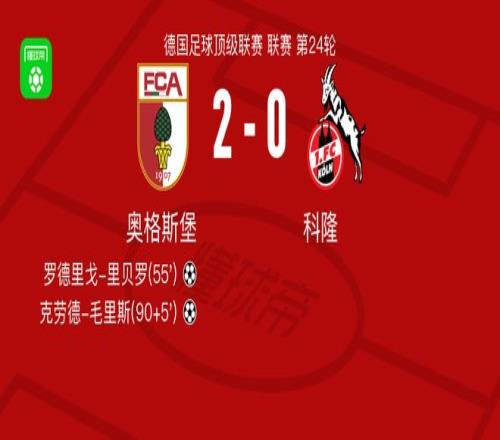北京时间2月28日德国足球顶级联赛 联赛 第24轮,奥格斯堡主场对阵科隆。奥格斯堡罗德里戈-里贝罗破门,克劳德-毛里斯破门。最终比分奥格斯堡 2-0 科隆。