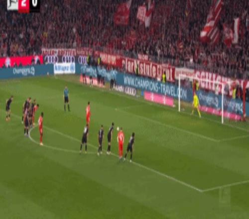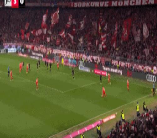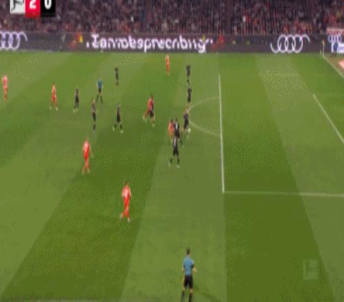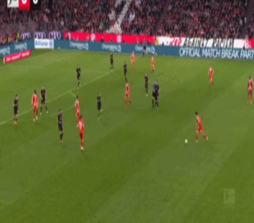 第32分钟,格雷茨卡挑传,迪亚斯凌空抽射破门,拜仁1-0门兴