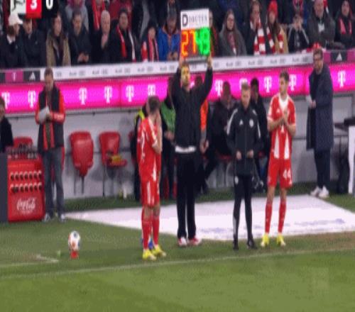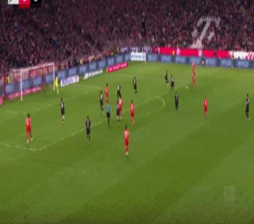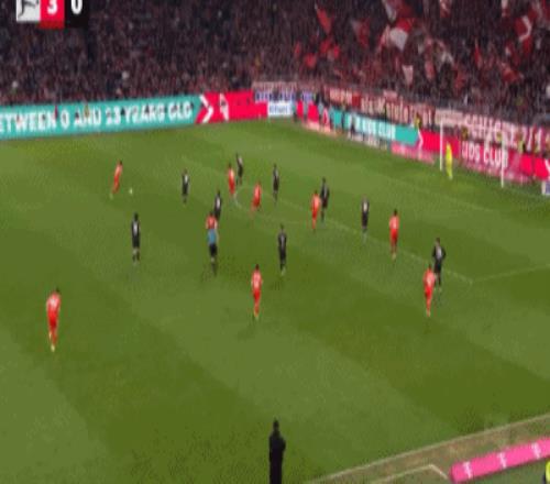第57分钟,红点套餐,雅克松造点,穆西亚拉破门,拜仁3-0门兴