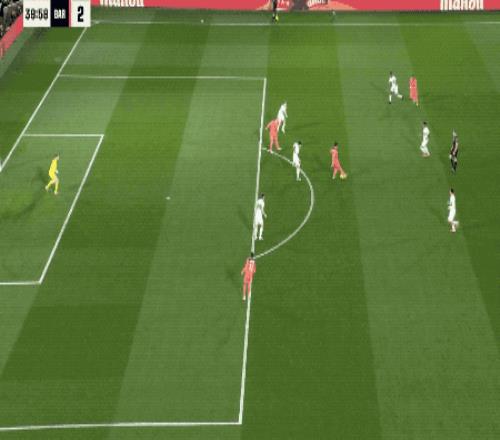 奥尔莫的射门击中横梁后,第29分钟,巴萨习惯性防线前压,阿尔瓦罗·罗德里格斯反越位成功,冷静将球打进。