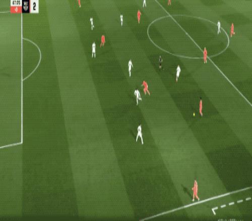 第40分钟,浪费了一个又一个机会的费兰·托雷斯终于将球打进,德容的助攻相当无私,费兰无人盯防,推射破门。