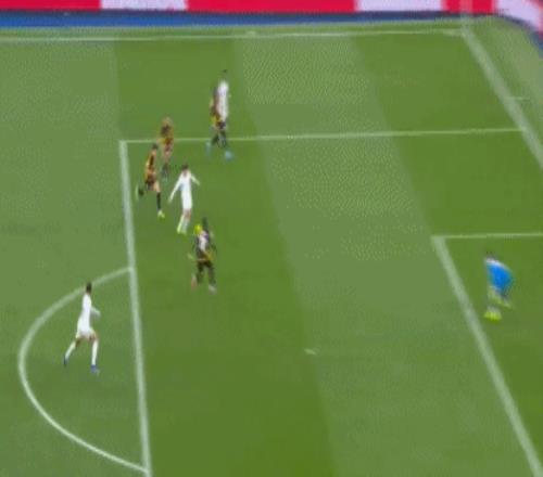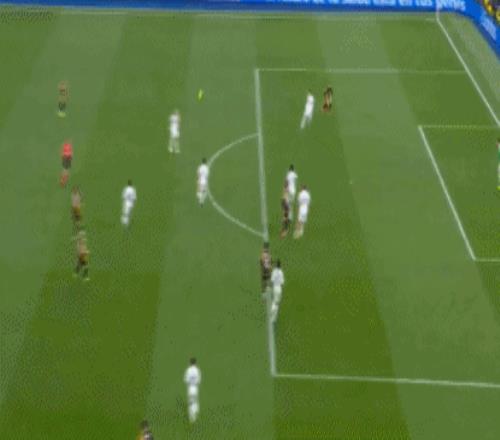第15分钟,卜拉欣左路分球,维尼修斯禁区内连续变向,一对三完成摆脱,随即兜射轰出世界波,皇马1-0领先,熊皇终于打破13场西甲进球荒。