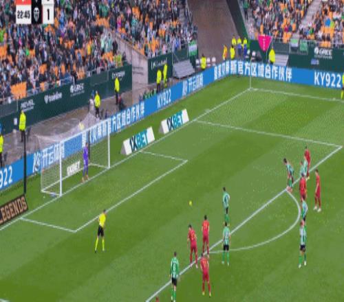 第20分钟,瓦伦西亚通过一次流畅配合打破僵局,贝尔特兰送出妙传,里奥哈在弧顶附近低射破门,贝蒂斯0-1落后。