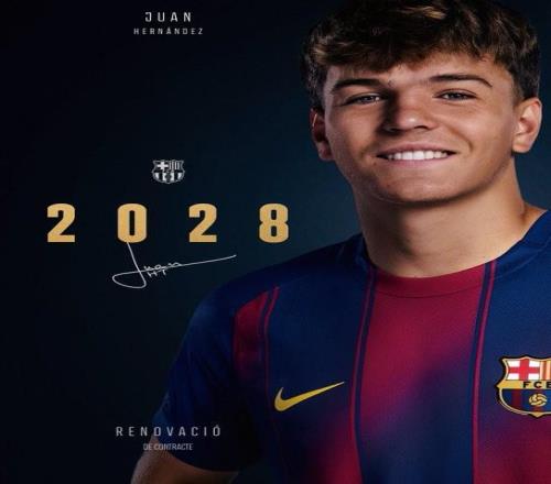 巴塞罗那足球俱乐部已与胡安-埃尔南德斯就合同续约达成一致,新合同将其效力期限延长两个赛季,直至2028年6月30日,同时附带再续约一个赛季的选项。