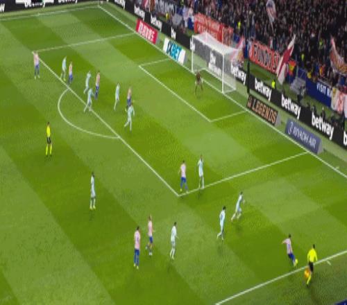 下半场第76分钟,马竞造成迭戈-略伦特不幸乌龙,但VAR介入后判罚格列兹曼越位在先,这粒进球被吹,VAR划线镜头显示,格列兹曼的脚尖稍稍越位。