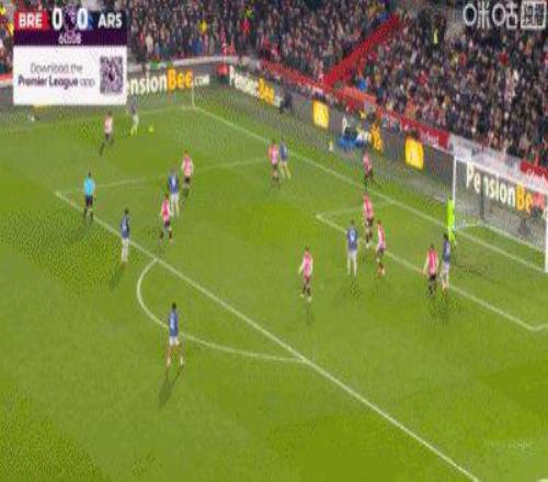 精彩进球:第61分钟,马杜埃凯禁区跃起头球破门,阿森纳1比0布伦特福德