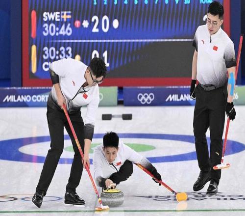 当地时间2月14日下午,本届冬奥会男子冰壶循环赛第四轮,由四垒徐晓明、三垒费学清、二垒李智超、一垒许静韬组成的中国男队对阵埃丁率领的卫冕冠军瑞典队。中国男队最终4比6输掉比赛遭遇四连败。