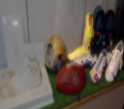 对,这双是耐克送我的,是我们拿到第一座欧冠之后送的。这里还有一双,是进球纪念的.