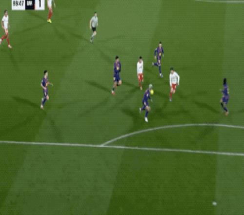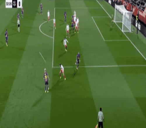 第33分钟,费尔明停球后横向盘带,起脚劲射,皮球颇具威胁。