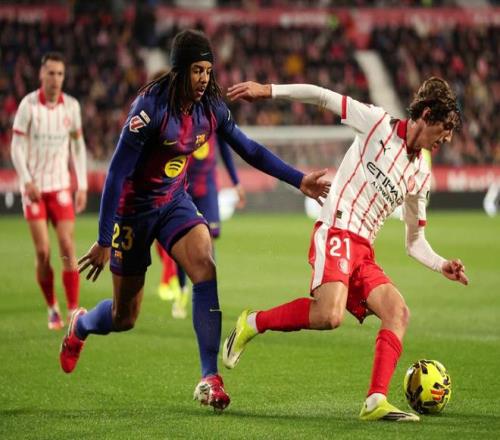 比赛开打之后,实力更强的巴萨就反客为主,压着赫罗纳猛攻,第6分钟亚马尔接到拉菲尼亚左路倒三角传中后,直接起脚兜射远角,但皮球没有命中目标,擦着远侧立柱出了底线,第17分钟巴萨再次打出边中结合,拉菲尼亚禁区内扣过防守球员后,打近角再次出了底线。