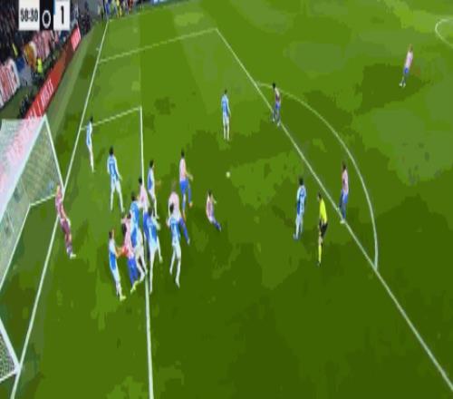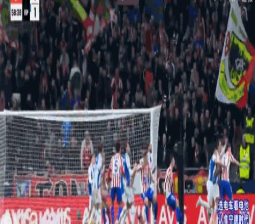 第59分钟,鲁杰里头球后蹭,卢克曼冲顶得分,马竞3-1