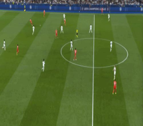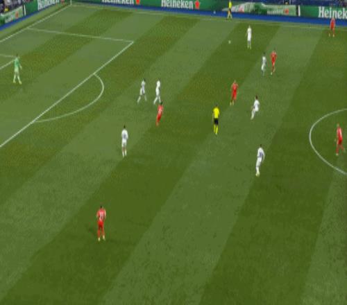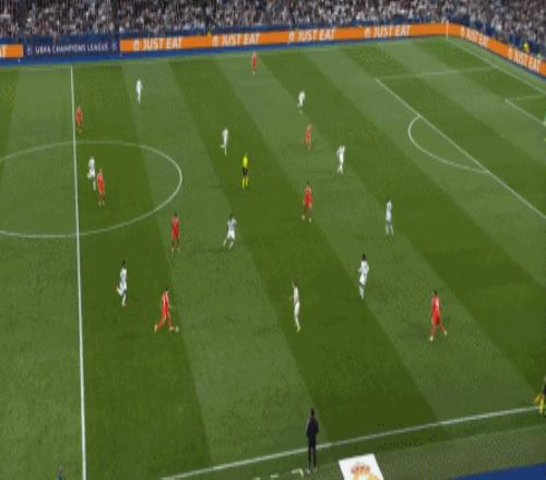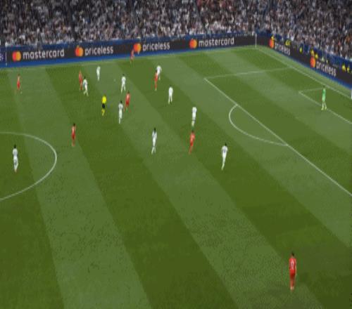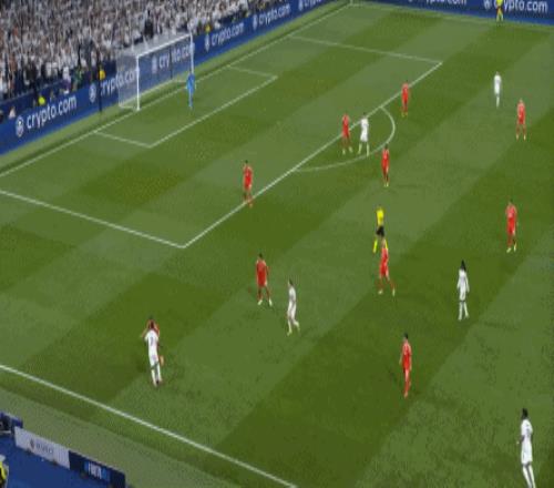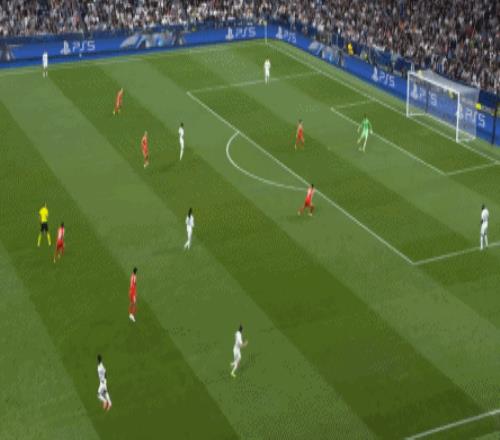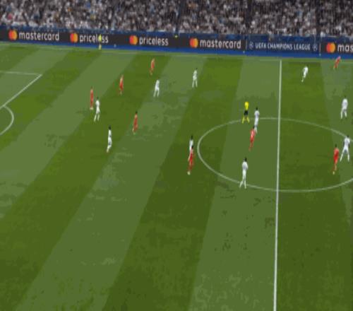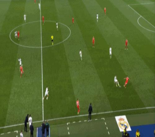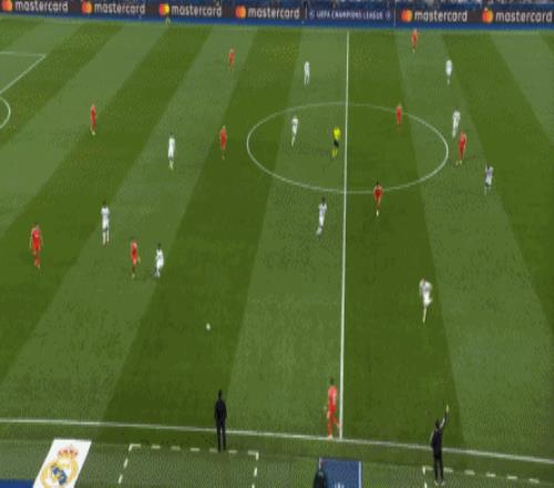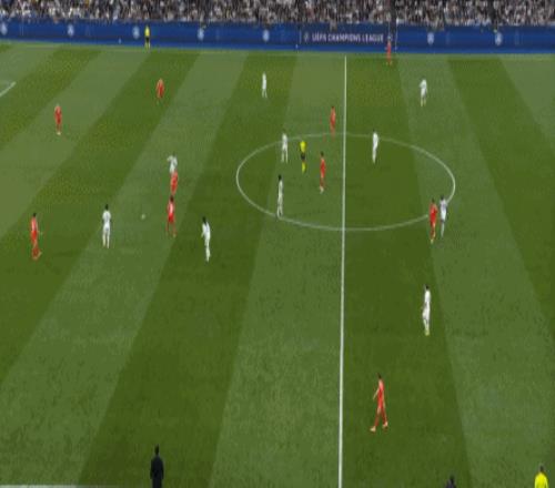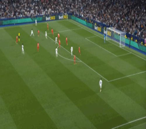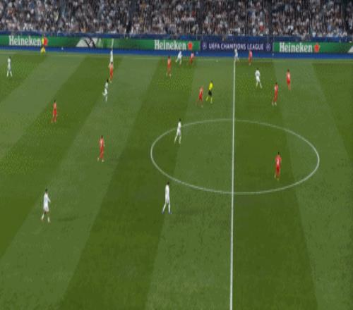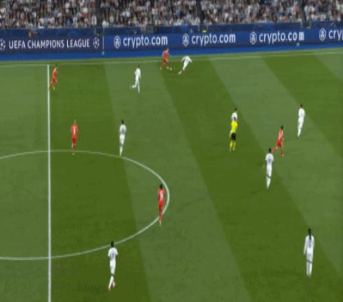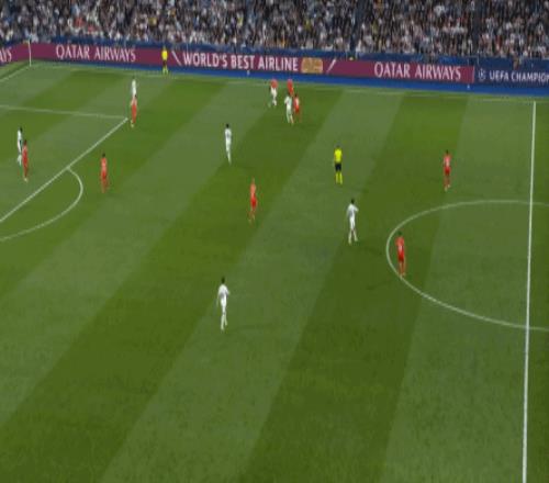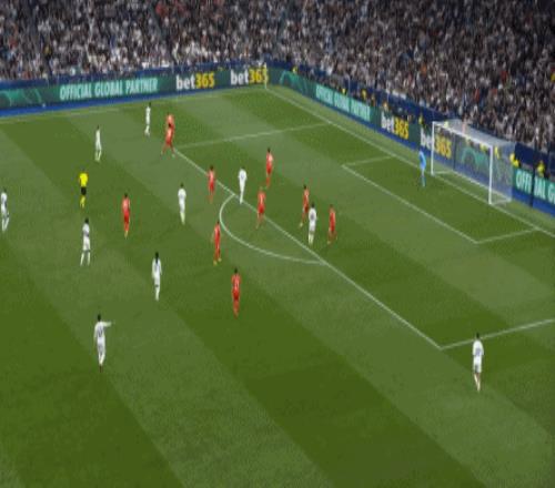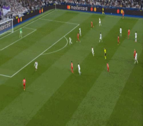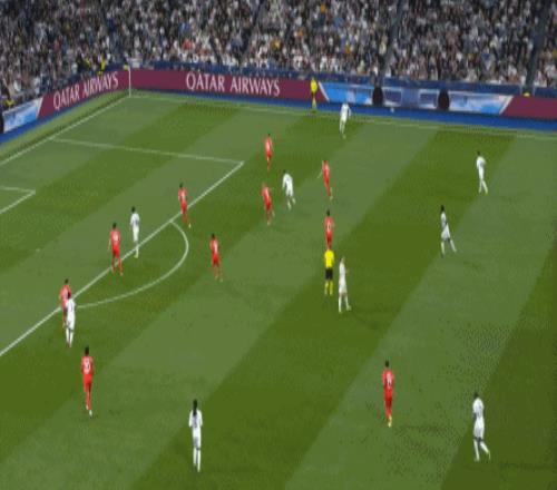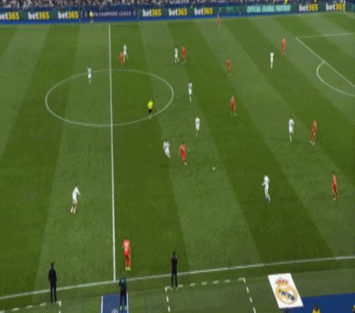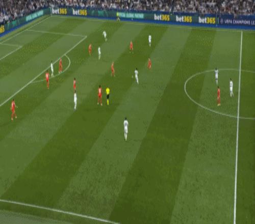 尽管他也不是每一次都能打出威胁,但确实能牵制住本菲卡的防守注意力,从而给右侧拉出空间,形成强弱侧的联动之后,皇马就能提高自己的进攻效率了: