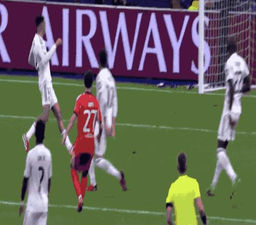 第53分钟,皇马获得前场任意球,阿诺德传中,阿森西奥的头球稍稍高出。