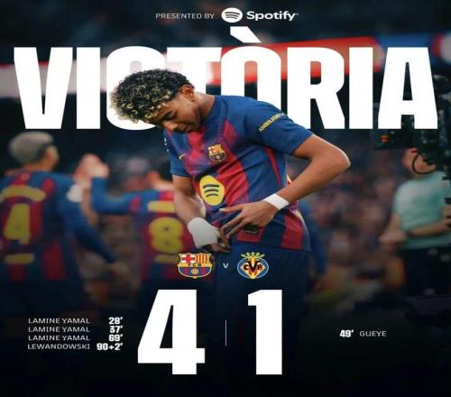 北京时间2月28日23点15分,西甲第26轮迎来焦点战,西甲领头羊巴萨坐镇主场迎战联赛排名第三的比利亚雷亚尔。上半场比赛,费尔明助攻亚马尔先拔头筹,随后后者一条龙再下一城,帮助球队扩大比分。下半场比赛,盖伊扳回一城,佩雷斯失良机,亚马尔单刀上演生涯首次帽子戏法,莱万补时阶段破门。最终,巴萨4比1大胜比利亚雷亚尔,先赛一轮的情况下领先第二名皇家马德里4分。