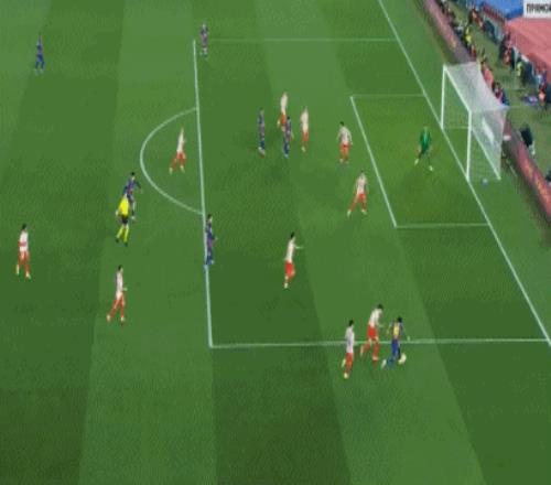 第72分钟,亚马尔开出战术角球,坎塞洛右路45°传中,贝尔纳尔后点包抄推射建功,上演梅开二度好戏,巴萨再下一城,3-0!