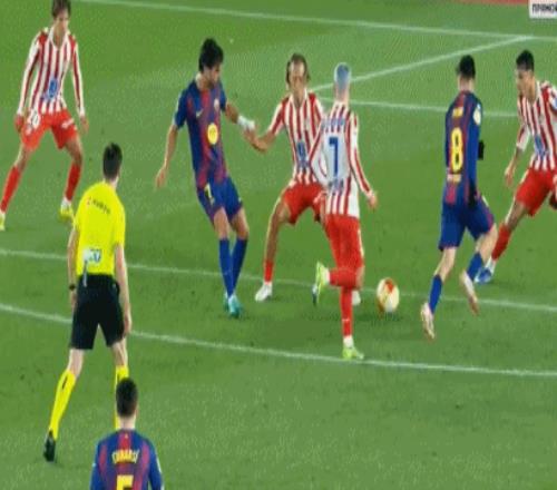 第27分钟,鲁杰里左路低平球横传,格列兹曼门前接应,摆脱防守抽射一气呵成,打得太正被霍安-加西亚扑出。
