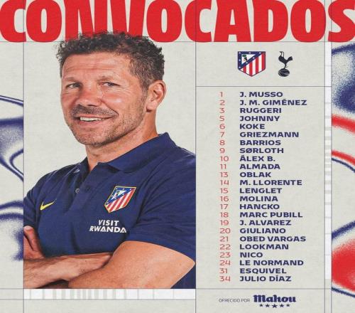 北京时间3月11日凌晨4点,欧冠1/8决赛首回合,马竞将在主场迎战热刺。赛前,马竞官方公布了本场比赛的大名单。