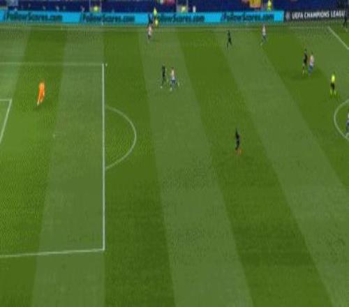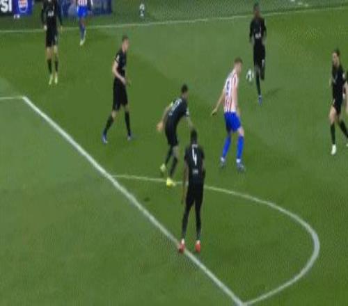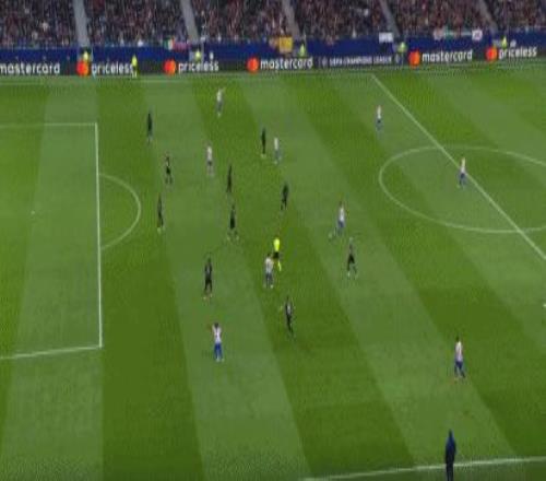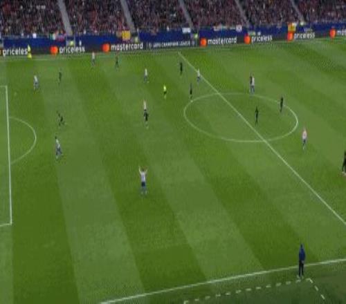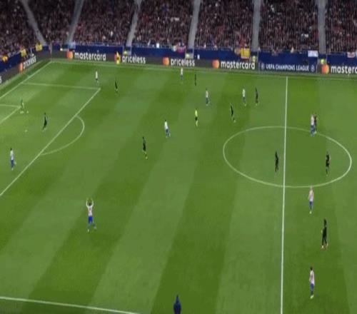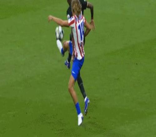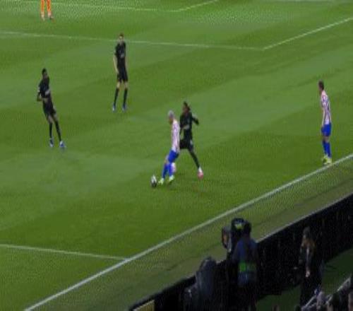 第14分钟,范德芬失误滑倒,格列兹曼单刀破门,马竞2-0!