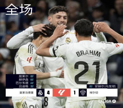 不逼一把,都不知道自己原来这么狠。欧冠胖揍曼城,皇马在联赛也没松劲,主场4比1击败弱旅埃尔切。巴尔韦德神威不减,再进一个世界波。但要说真正的世界波还要看居莱尔。他用一记60米开外的超远距离吊射,加入竞争“普斯卡什奖”的战团。