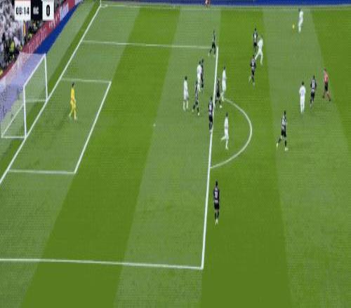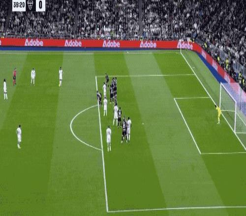 第90分钟,刚刚替补登场的居莱尔在本方半场得球,看到门将站位靠前,他毫不犹豫直接起脚吊射。皮球从半场飞越门将头顶直入球网,皇马4-1,伯纳乌瞬间陷入疯狂,这粒进球甚至让人想起当年贝克汉姆的经典远距离吊射。