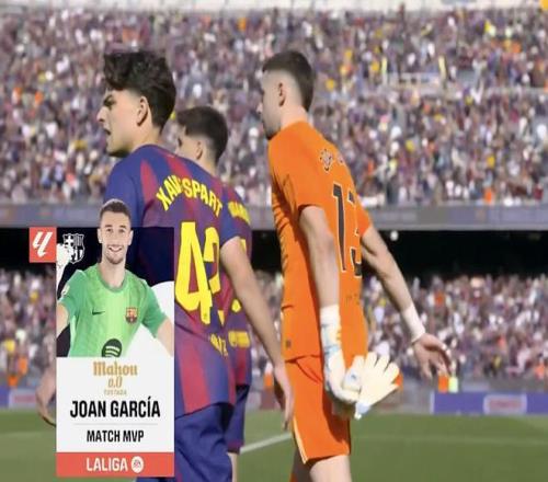 西甲第29轮,巴塞罗那主场1-0击败巴列卡诺,此役贡献4次扑救的巴萨门将霍安-加西亚当选西甲官方全场最佳球员。