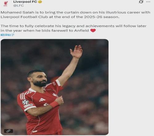 官方:利物浦宣布萨拉赫将在本赛季结束后离队,结束其9年红军生涯,这是双方讨论后达成的共识。