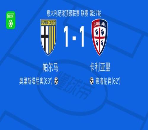 北京时间2月28日意大利足球顶级联赛第27轮,帕尔马主场迎来卡利亚里的挑战。比赛中,卡利亚里球员塞巴斯蒂亚诺-埃斯波西托助攻弗洛伦肖完成破门,随后帕尔马的奥里斯塔尼奥打入一球。最终两队1-1握手言和。