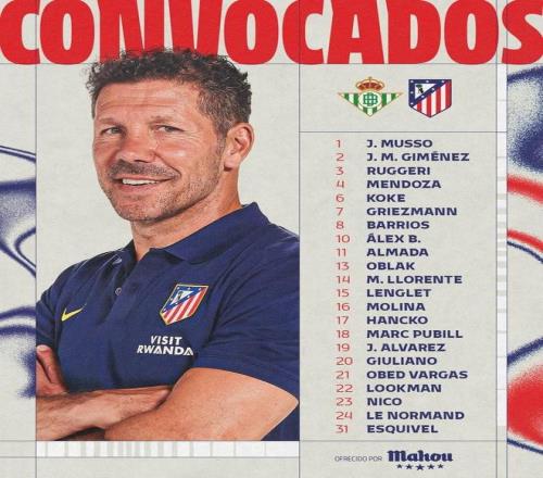 马竞客战贝蒂斯大名单: