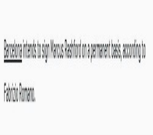 意大利转会专家法布里济奥·罗马诺证实,巴萨已经向拉什福德及其经纪人承诺,会全力完成转会。「巴萨的意图是买断拉什福德。」罗马诺告诉「DAZN」说,「最近几周,他们已经把这个消息告诉了拉什福德和他的经纪人,所以巴萨会竭尽全力(do everything they can do)。」