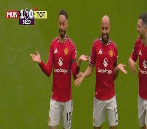 比赛第37分钟,曼联角球精妙配合,姆伯莫推杆破门,曼联1-0领先热刺!
