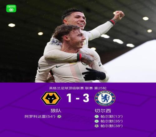 北京时间2月7日英格兰足球顶级联赛第25轮,狼队主场对阵切尔西。上半场,若昂-佩德罗两次造点,帕尔默点球双响+破门完成帽子戏法,下半场,阿罗科达雷扳回一城。最终比分狼队1-3切尔西。